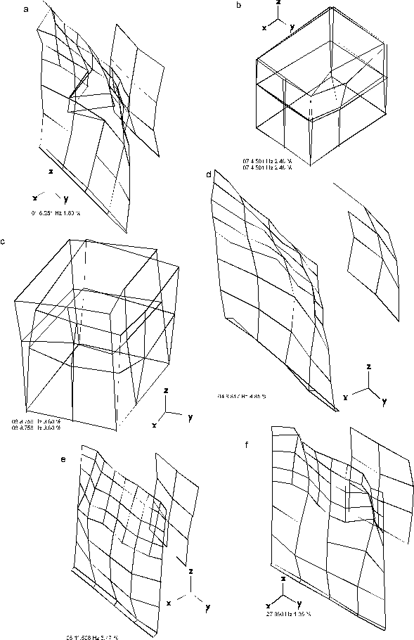 - wyznaczono częstotliwości rezonansowe kabiny oraz jej ścian, a także określono postacie tych drgań.