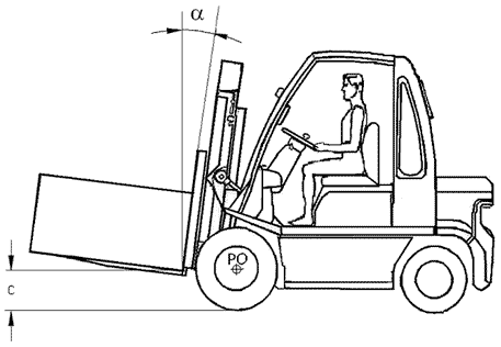 2) C- wysokość podniesienia ładunku względem podłoża;