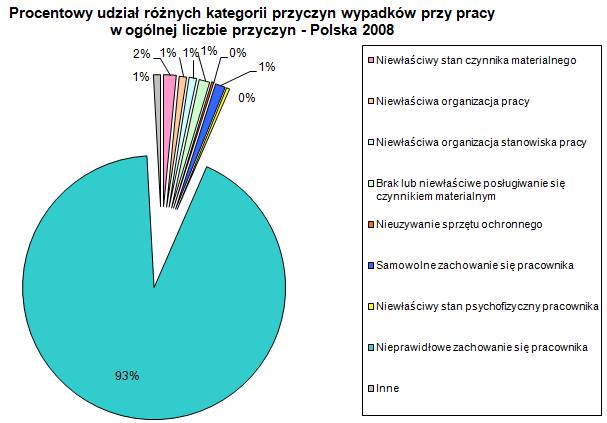 Rys. 11. Struktura przyczyn wypadków przy pracy w Polsce, 2008.