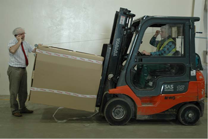 W celu sprawdzenia, czy wysokość B jest zawarta w granicach określonych w Tablicy 2, wystarczy zmierzyć tę wysokość jak to zilustrowano na rys. 1 z zastosowaniem przymiaru liniowego o długości 1,5 m. Jeśli wartość wysokości B przekracza dopuszczalną wartość o kilka cm, rozwiązaniem może być zmniejszenie wysokości C położenia ładunku – zależy to od jakości podłoża, po którym będzie się poruszał wózek. Jeśli zaś nie można zmniejszyć wartości C, to dany ładunek nie powinien być przewożony na wózku, ponieważ ryzyko kolizji wózka z osobą pieszą, innym wózkiem czy elementem infrastruktury jest zbyt duże, ze względu na niewystarczającą widoczność otoczenia przez operatora wózka z danym ładunkiem.