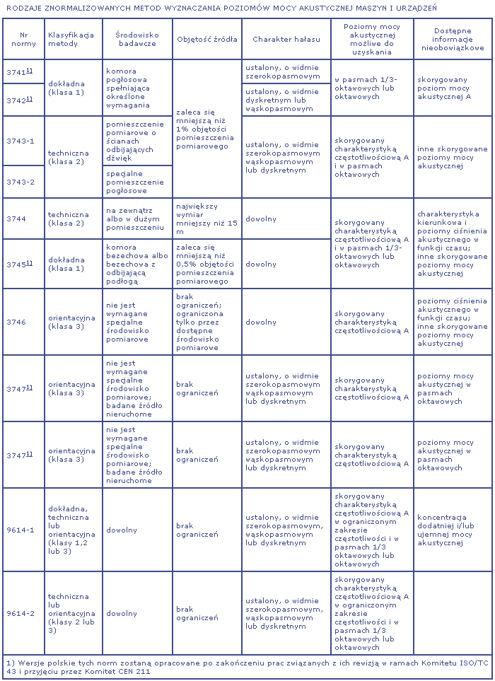 Normy dotyczące metod wyznaczania poziomu ciśnienia akustycznego emisji (normy serii EN ISO 11200) omówimy w odrębnej publikacji.