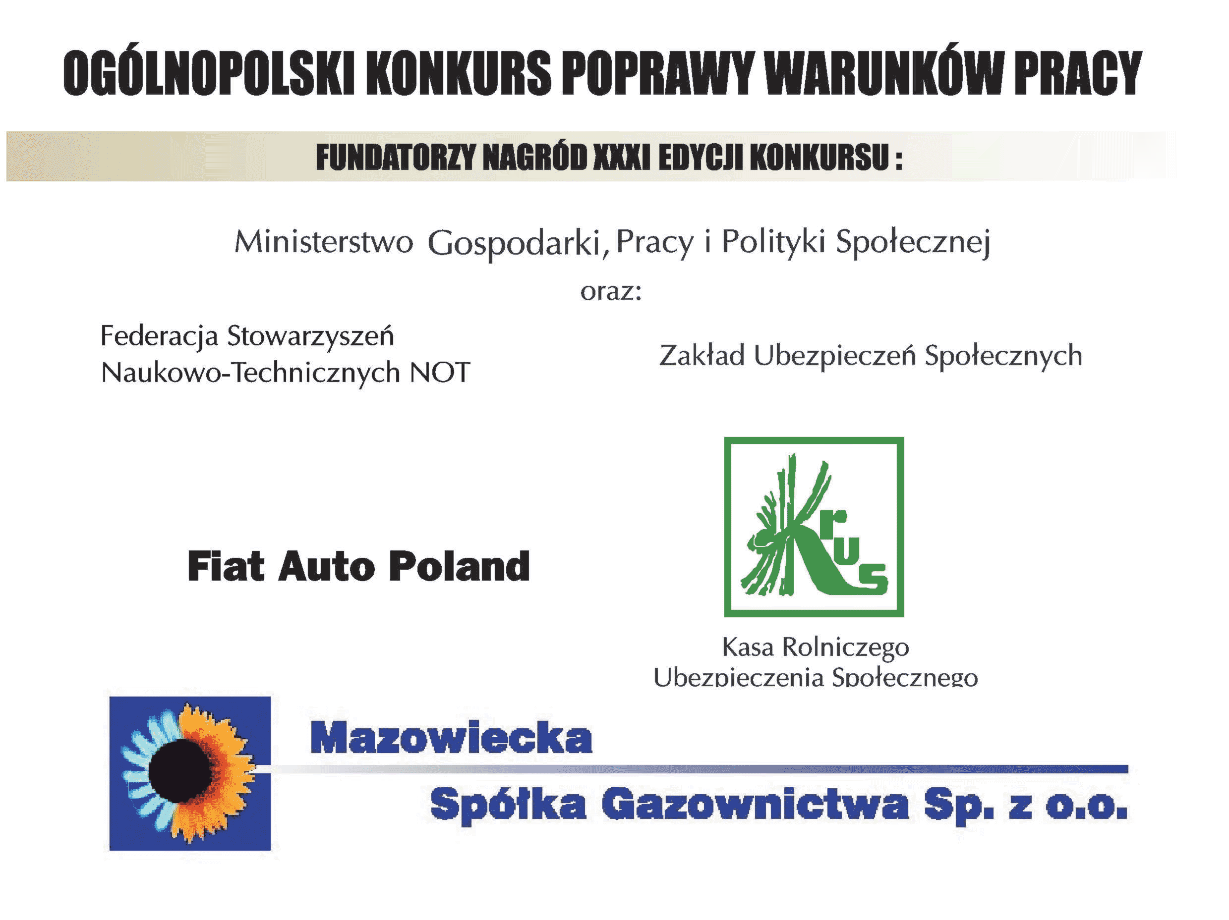 Na 31 edycję Ogólnopolskiego Konkursu Poprawy Warunków Pracy nadesłano 68 prac. Konkurs realizowany był w dwóch kategoriach: